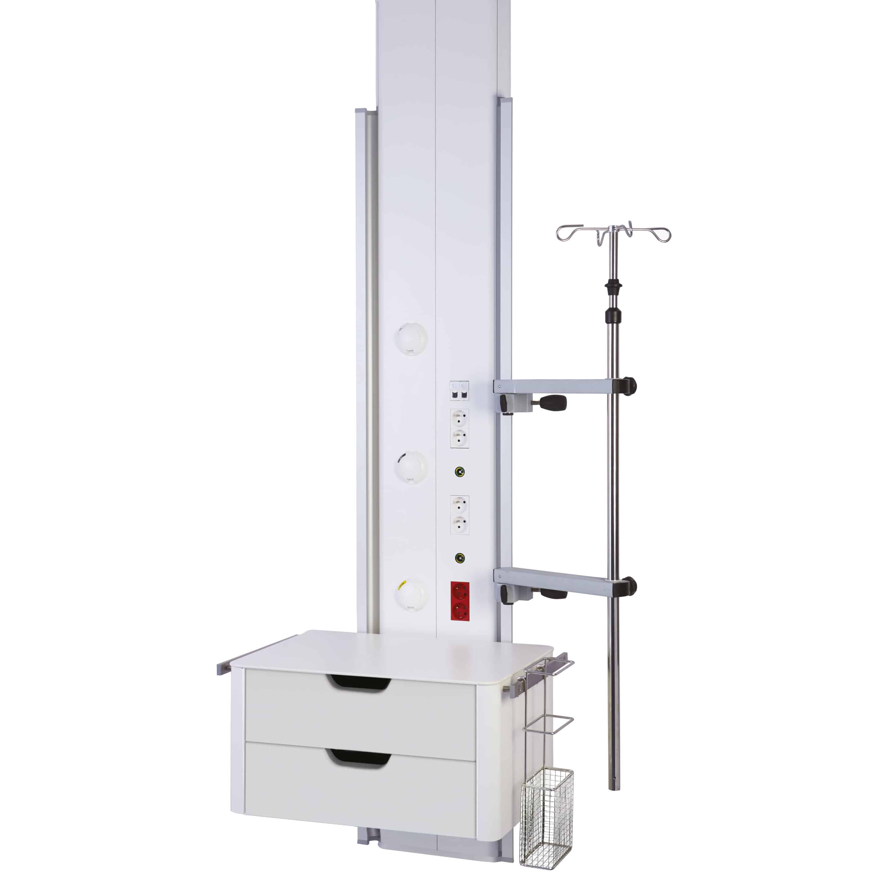 FLUIDYS può integrare dei carrelli scorrevoli che permettono il montaggio di ripiani e cassettiere. I ripiani sono progettati per soddisfare le esigenze in termini di igiene e durata di vita. I ripiani sono composti da una superficie in materiale compatto di colore bianco (HPL). Permettono una facile manipolazione delle utenze.